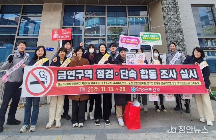 정안뉴스 김재홍 기자 | 함양군 보건소는 금연구역 내 흡연을 예방하고 주민 건강 보호를 강화하기 위해 11월 13일부터 25일까지 금연구역 점검·단속 합동 조사 기간을 운영한다고 밝혔다.