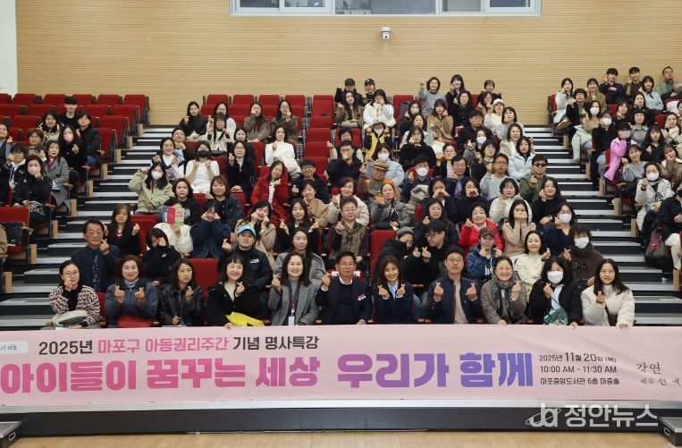 정안뉴스 안정주 기자 | 마포구는 11월 20일 오전 10시, 마포중앙도서관 마중홀에서 배우 신애라를 초청해 2025년 아동권리주간 기념 명사특강을 개최했다.