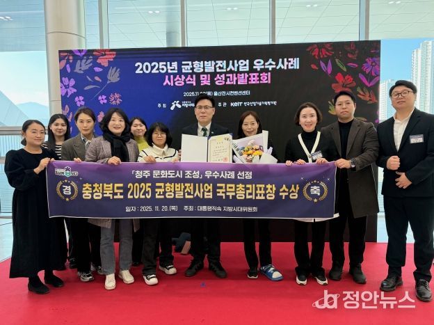 정안뉴스 황은경 기자 | 충북도가 울산전시컨벤션센터(UECO)에서 치러진 ‘2025 지방시대 엑스포’ 이튿날 행사인 ‘2025 지역균형발전사업 우수사례 시상식 및 성과발표회’에서 국무총리 표창을 수상했다.