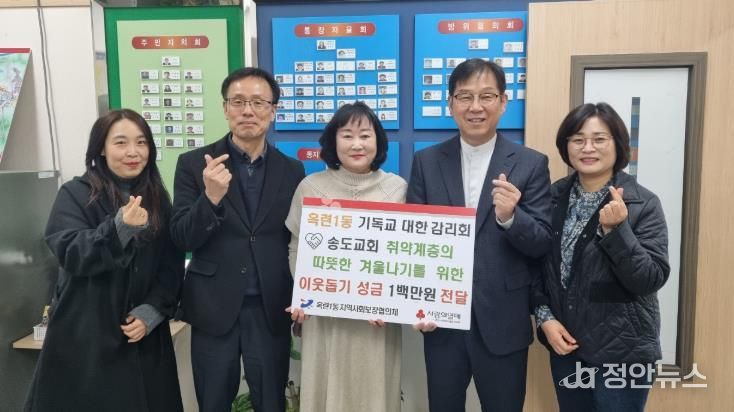 같은 날 옥련1동 지역사회보장협의체는 송도감리교회로부터 이웃돕기 성금 100만 원을 전달받았다.