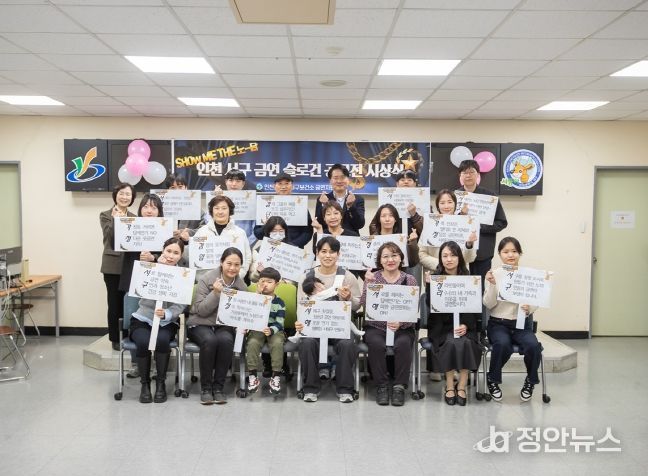 정안뉴스 안정주 기자 | 인천 서구는 지난 19일 서구보건소에서 인천 서구 금연 슬로건 공모전 ‘SHOW ME THE 노담’의 시상식을 개최했다.