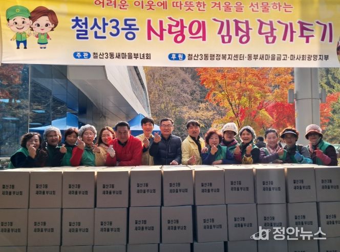 정안뉴스 안정주 기자 | 광명시 철산3동 새마을부녀회는 지난 19일부터 20일까지 이틀간 철산3동 행정복지센터 앞마당에서 ‘사랑의 김장 나누기’ 행사를 열었다.
