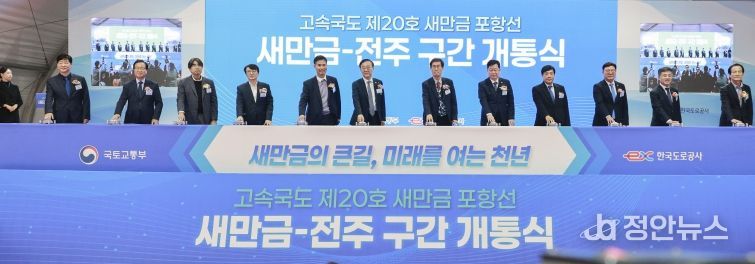정안뉴스 안정주 기자 | 새만금과 전주를 하나로 묶는 길이 열렸다. 전북의 하늘과 땅, 바다를 연결해 도약의 기반을 놓는 ‘새만금~전주 고속도로’가 마침내 완성된 것이다.