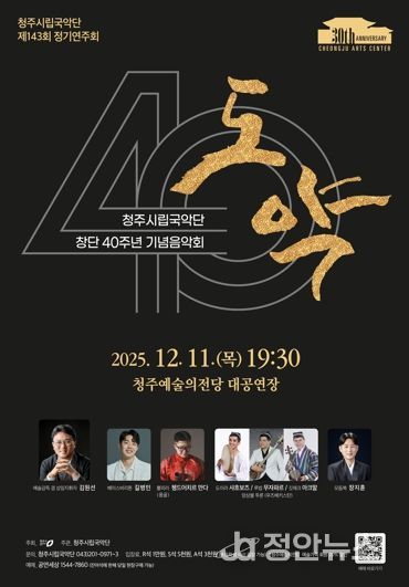 이번 공연은 올 한 해를 마무리하는 무대이자 청주시립국악단의 창단 40주년을 기념하는 뜻깊은 자리로 더욱 특별한 감동을 선사할 예정이다.