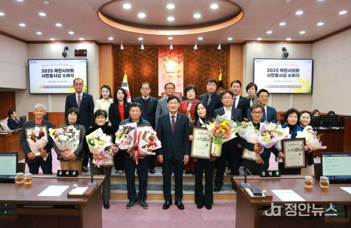 정안뉴스 황은경 기자 | 제천시의회는 24일, 지역사회 발전과 이웃 사랑 실천에 앞장서 온 우수 봉사자 8명에게 ‘제천시의회 의장 표창패(시민봉사상)’를 수여했다.