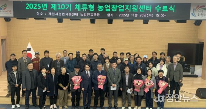 정안뉴스 황은경 기자 | 제천시 농업기술센터는 지난 20일 제천시 농업기술센터 농업인 교육장에서 2025년 제10기 체류형 농업창업지원센터 수료식을 개최했다.