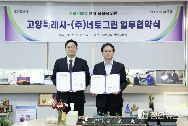 정안뉴스 안정주 기자 | 고양특례시는 지난 21일(금) ㈜네토그린과 ‘스마트농업 확대·육성을 위한 업무협약(MOU)’을 체결했다고 밝혔다.
