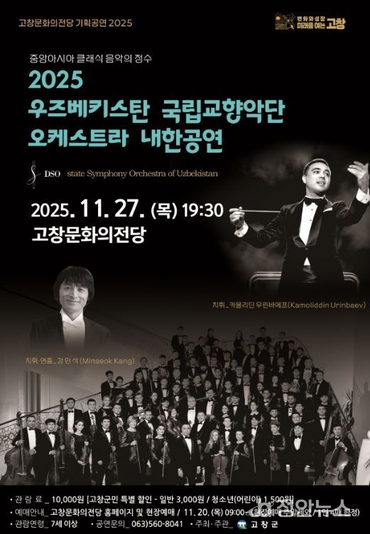 정안뉴스 안정주 기자 | 오는 27일 저녁 7시30분 고창문화의전당에서 ‘우즈베키스탄 국립교향악단 오케스트라 내한공연’이 진행된다.