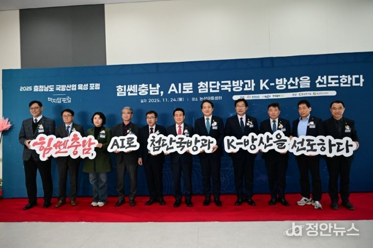 논산시(시장 백성현)는 24일 논산아트센터에서 충청남도, 한국일보와 함께 ‘2025 충남 논산 국방산업육성포럼’을 열고, ‘힘쎈 충남, AI로 첨단국방과 K-방산을 선도하다’를 주제로 국방산업 미래 전략을 논의했다.