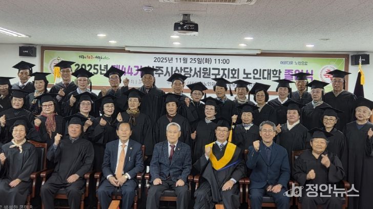 정안뉴스 황은경 기자 | (사)대한노인회 청주시상당서원구지회 부설 노인대학은 25일 지회 회의실에서 제44기 노인대학 졸업식을 개최했다.