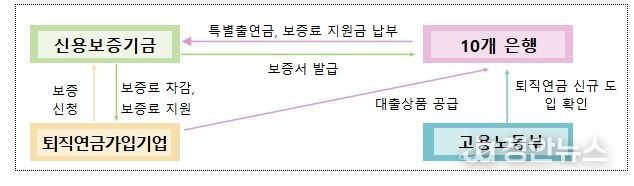정안뉴스 안정주 기자 | 고용노동부는 신용보증기금과 10개 은행이 함께 참여해 중소기업 대상 총 3,300억원 규모의 ‘퇴직연금 활성화를 위한 융자지원’을 11월 27일부터 본격 시행한다고 밝혔다.