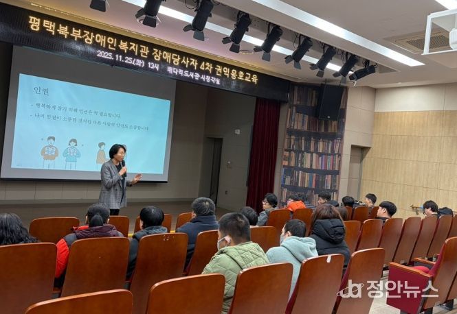 정안뉴스 안정주 기자 | 평택북부장애인복지관(관장 유영애)은 11월 25일, 배다리도서관에서 관내 3개 기관의 장애 당사자들을 대상으로 '2025 장애당사자 제4차 권익옹호교육'을 실시하며, 금년도 계획된 권익옹호교육 일정을 모두 마무리했다.