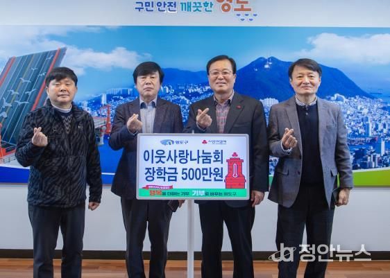 정안뉴스 황정혜 기자 | 이웃사랑나눔회는 지난 11월 28일 영도구를 방문하여 이웃돕기 성금 500만 원을 기탁하며 연말 지역사회에 따뜻함을 더했다.