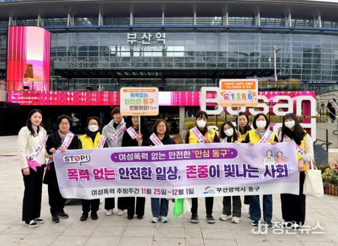 정안뉴스 황정혜 기자 | 부산 동구는 여성폭력 추방주간(11월25일~12월1일)을 맞이하여 지난 27일 부산역 광장에서 여성폭력 예방을 위한 민관 합동 캠페인을 펼쳤다.