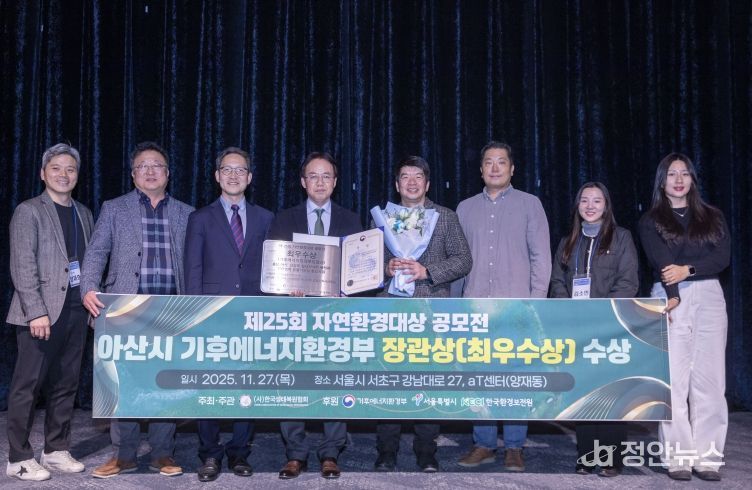 정안뉴스 황도연 기자 | 아산시는 27일 서울 aT센터에서 열린 ‘제25회 자연환경대상 공모전’ 시상식에서 복원사업 부문 ‘최우수상(장관상)’을 수상했다고 밝혔다.