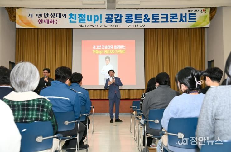이날, 안상태 강사와 공영방송 작가 출신 송진완 강사가 참여해 ▲공직사회 친절의 의미 공유 ▲ 개그 콩트결합 토크 ▲ 민원응대 상황극 및 현장 소통 등 쌍방형 프로그램을 통해 웃음 속에서 자연스럽게 공감과 배려의 친절을 체득할 수 있도록 진행됐다.