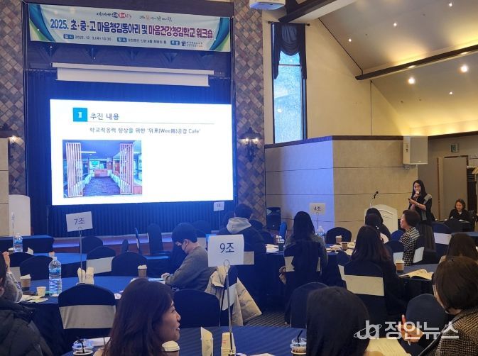 정안뉴스 황은경 기자 | 충청북도교육청은 3일, 청주시 S컨벤션에서 도내 초‧중등학교 마음챙김동아리 및 마음건강챙김학교 담당교사 56명과 마음건강증진센터 관계자 4명을 대상으로 마음챙김동아리 및 마음건강챙김학교 워크숍을 열었다.