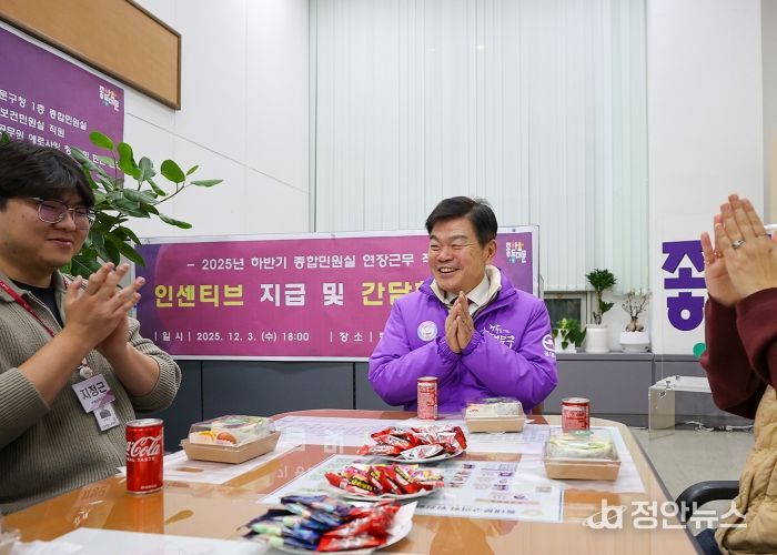 이 구청장은 “늦은 시간까지 자리를 지켜 구민 편의를 위해 헌신한 여러분께 진심으로 감사드린다”며 “여러분의 노력이 구민들의 편리하고 신속한 민원 처리로 이어지고 있다”고 격려했다.