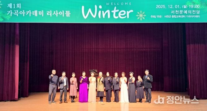 정안뉴스 황도연 기자 | 서천군 종합교육센터 가곡아카데미는 지난 1일 오후 7시 서천문예의전당에서 ‘제1회 가곡아카데미 리사이틀’을 개최했다.