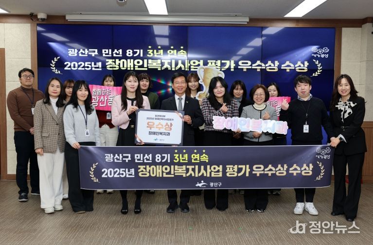 정안뉴스 안정주 기자 | 광주 광산구는 보건복지부가 주관하는 ‘2025년 지자체 장애인복지사업 평가’에서 3년 연속 우수 지자체로 선정됐다고 밝혔다.