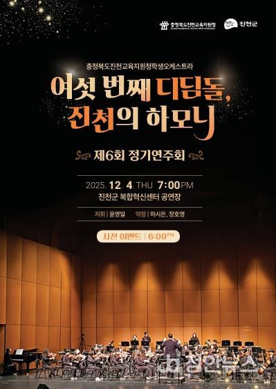 정안뉴스 황은경 기자 | 진천교육지원청은 오는 12월 4일, 복합혁신센터에서 ‘제6회 진천교육지원청학생오케스트라 정기연주회’를 개최하여 성황리에 막을 내렸습니다. 정기연주회는 지난 1년간 갈고닦은 단원들의 빛나는 성과를 선보이는 자리이자, 지역 주민들에게 감동적인 문화 향유의 기회를 제공하기 위해 마련됐다.