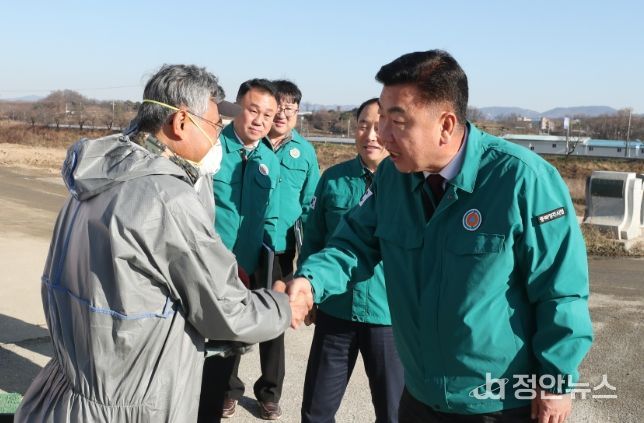 정안뉴스 황은경 기자 | 이범석 청주시장은 4일 고병원성 조류인플루엔자(AI) 방역 현장을 방문해 조치사항과 대응 매뉴얼을 점검하고 현장 직원들에게 철저한 방역 추진을 당부했다.