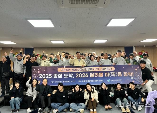 정안뉴스 안정주 기자 | 김제시는 4일 김제시장애인평생교육센터 강당에서 등록회원과 가족들이 참석한 가운데 김제시정신건강복지센터 송년행사를 개최했다고 밝혔다.