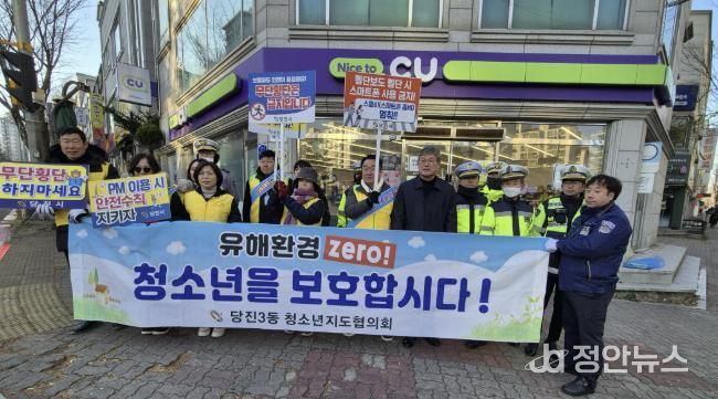 정안뉴스 황도연 기자 | 당진3동은 당진3동 청소년지도위원 협의회에서 지난 4일 당진3동 원당초등학교, 원당중학교 인근에서 등굣길 학생 및 학부모와 운전자를 대상으로 교통안전 및 청소년 유해환경 차단 캠페인을 진행했다고 5일 밝혔다.