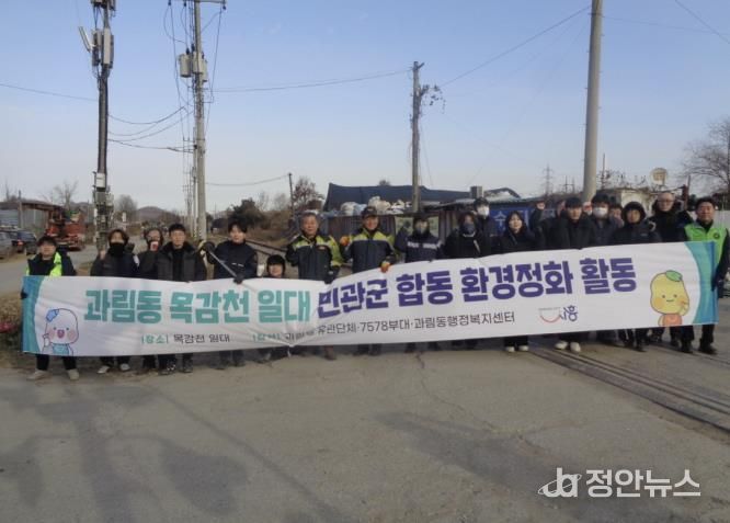 정안뉴스 안정주 기자 | 시흥시 과림동 행정복지센터는 지난 12월 3일 관내에 주둔하는 제7578부대 및 동 관계단체와 합동으로 목감천 일대 환경정화 활동을 진행했다.