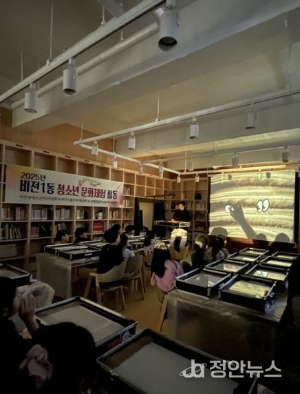정안뉴스 안정주 기자 | 평택시 비전1동 청소년지도위원회는 지난 2일부터 3일까지 이틀간 관내 지역아동센터 2곳에서 ‘2025 청소년 문화 체험 샌드아트 공연 및 체험 행사’를 성황리에 개최했다.