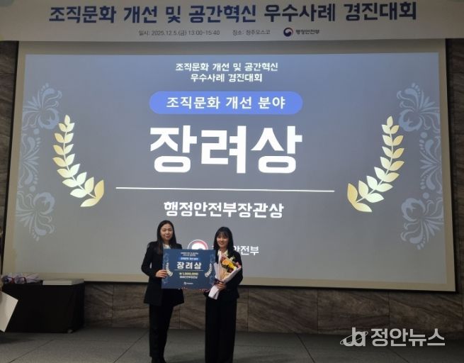 정안뉴스 김재홍 기자 | 경상남도가 5일 청주 오송컨벤션센터(OSCO)에서 열린 행정안전부 주관 ‘2025년 조직문화 개선 우수사례 경진대회’에서 ‘장려상’을 수상했다.