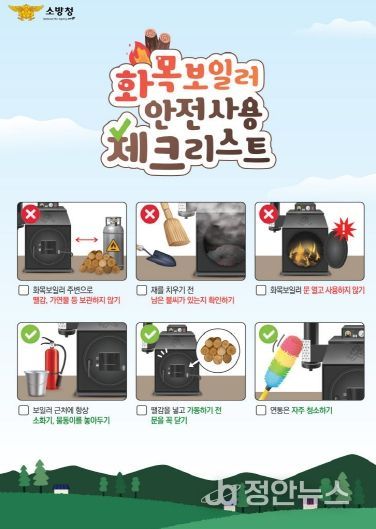 정안뉴스 황도연 기자 | 천안서북소방서(서장 김종욱)는 최근 기온이 떨어지며 화목보일러 사용이 증가함에 따라, 부주의로 인한 화재를 예방하기 위해 ‘화목보일러 안전사용 체크리스트’를 안내하며 각별한 주의를 당부했다.