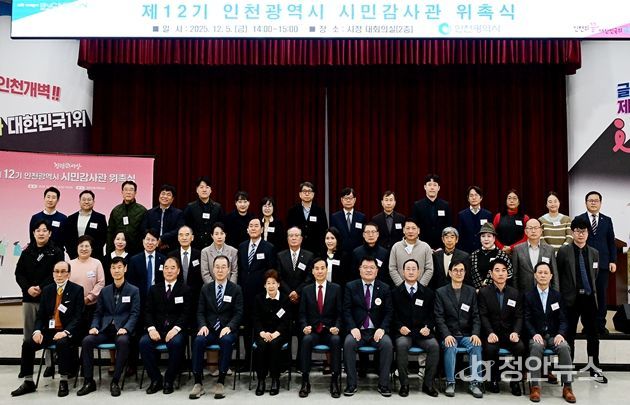정안뉴스 안정주 기자 | 인천광역시가 시민과 함께 더욱 투명하고 공정한 시정 구현을 위해 12월 5일 시청 대회의실에서 ‘제12기 인천시 시민감사관 54명’에 대한 위촉식을 개최했다고 밝혔다.