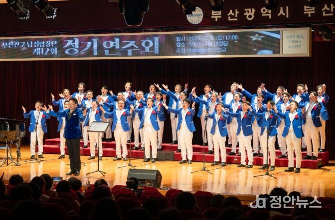 정안뉴스 황정혜 기자 | 부산진구 남성합창단이 지난 6일 구청 대강당에서 지역 주민 및 관계자 등 200여 명이 참석한 가운데 제12회 정기연주회를 성황리에 마쳤다고 밝혔다.