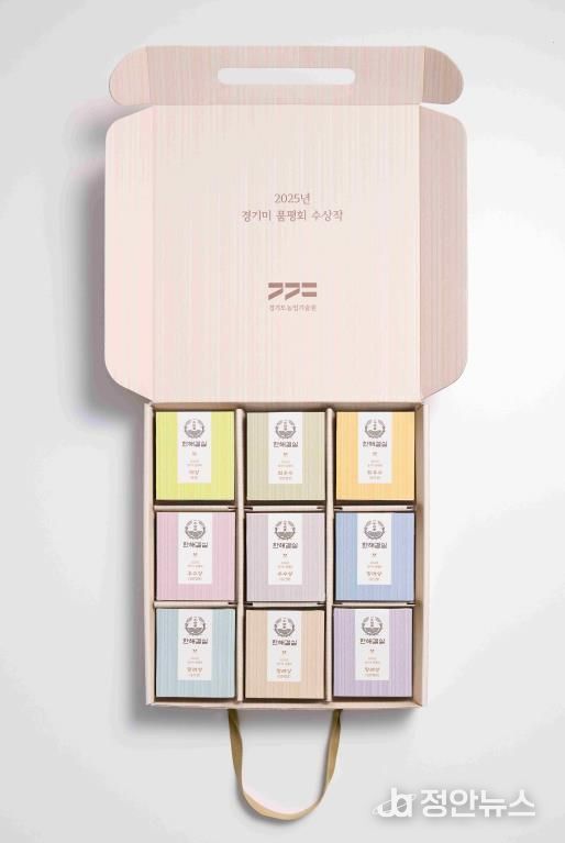 ‘한해결실’은 올 한 해 경기도에서 생산된 쌀 중 최고의 결실만을 모았다는 뜻을 담고 있다. 소비자가 최고급 쌀을 조금씩 맛보고 비교해 볼 수 있는 ‘쌀 샘플러’ 형식으로, ‘2025년 경기미 품평회’ 수상작 9종이 300g씩 포장돼 있다. 총 2.7kg에 판매가 29,900원(배송비 별도)이며, 오는 15일부터 순차 배송된다.