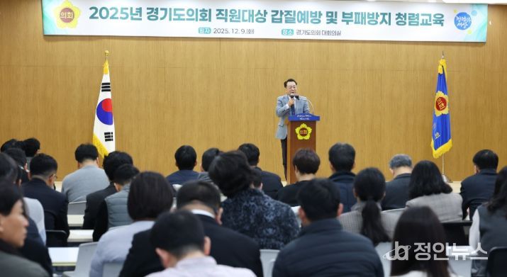 정안뉴스 안정주 기자 | 경기도의회는 9일 오전 의회 대회의실에서 전 직원을 대상으로 ‘갑질예방 및 부패방지 청렴교육’을 실시했다.