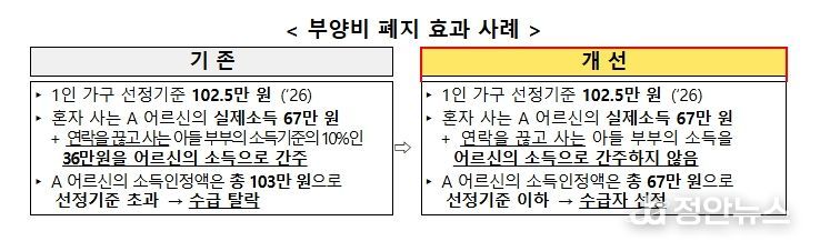먼저, 의료급여 부양비 제도가 이재명 정부 국정과제에 따라 26년 만에 폐지된다. 부양비는 부양의무자 관련 제도 중 하나로, 부양능력 미약구간에 있는 부양의무자의 경우 소득의 일부를 수급권자에게 생활비로 지원한다고 간주하고, 이를 수급권자 소득으로 반영하는 제도이다. 현장에서는 실제로 지원하지 않는 소득을 지원한다고 가정하여 간주 부양비로도 불리었다.