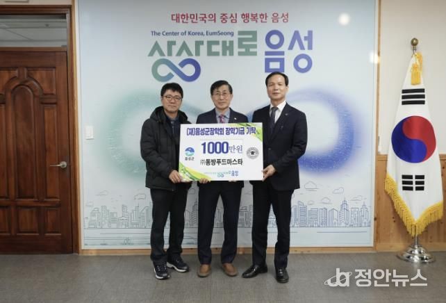 정안뉴스 황은경 기자 | ㈜동방푸드마스타는 지난 9일 (재)음성군장학회에 장학금 1천만원을 기탁했다.