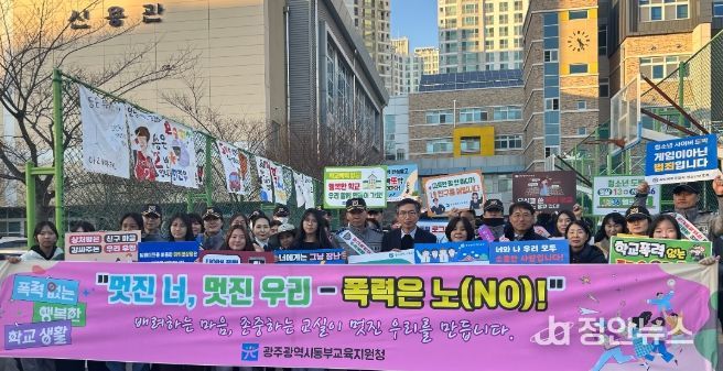 정안뉴스 안정주 기자 | 광주광역시동부교육지원청이 지난 9일 오후 4시 30분부터 북구 신용중학교와 신용동 일대에서 지역사회 유관기관과 함께 ‘찾아가는 학교폭력 예방 캠페인’을 실시했다.