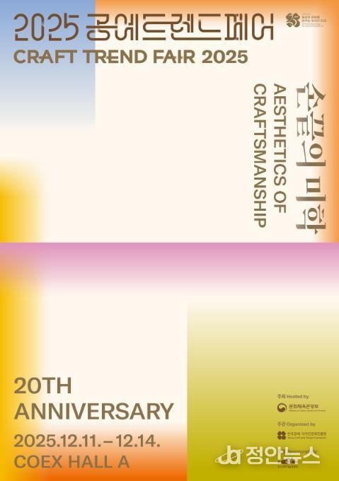정안뉴스 안정주 기자 | 문화체육관광부는 한국공예·디자인문화진흥원과 함께 12월 11일부터 14일까지 코엑스(서울 강남구)에서 ‘손끝의 미학’을 주제로 ‘2025 공예트렌드페어’를 열어 공예의 다양성과 시장성을 조명한다. 개막식은 행사 첫날인 12월 11일 오후 5시에 열리며, 이 자리에서 올해의 공예상 시상식도 함께 진행한다. ‘올해의 공예상’ 수상자로는 창작 부문에서 오화진 작가(섬유), 이론 부문에서 강재영 전시기획자를 선정했다.