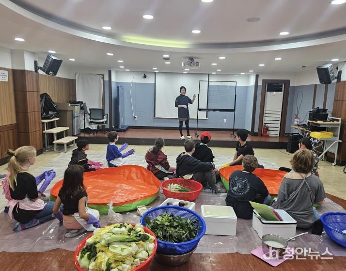 정안뉴스 안정주 기자 | (재)평택시청소년재단 팽성청소년문화의집은 지난 11일 미국 공군 자녀 청소년과 보호자 등 총 14명이 참여하여 ‘한국 전통음식 김장 체험 프로그램’을 성황리에 진행했다고 밝혔다.