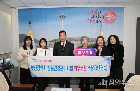 정안뉴스 황정혜 기자 | 부산 중구는 지역특성에 맞춘 맞춤형 보건·복지 서비스로 ‘3년 연속 방문건강관리사업 최우수 지자체’로 선정됐다.