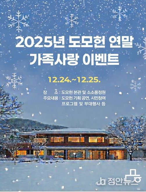 정안뉴스 황정혜 기자 | 부산시는 따뜻한 연말연시 분위기를 시민들과 나누기 위해 오는 12월 24일과 25일 양일간 '2025년 도모헌 연말 가족사랑 이벤트'를 개최한다고 밝혔다.