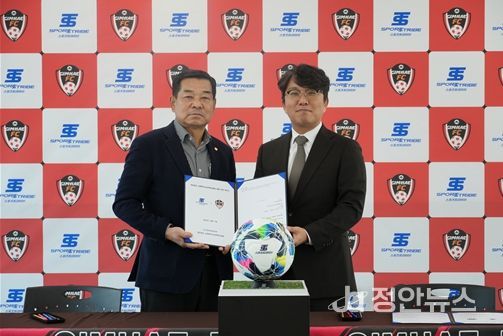 정안뉴스 김재홍 기자 | 김해FC2008과 스포츠트라이브(공동대표 황효진, 서정균)가 공식용품 후원 협약을 체결했다.