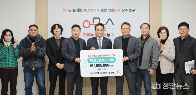 정안뉴스 안정주 기자 | 광주 동구는 (사)광주귀금속보석기술협회(회장 이영관)로부터 백미 530㎏(186만 1천 원 상당)을 최근 기부받았다고 밝혔다.