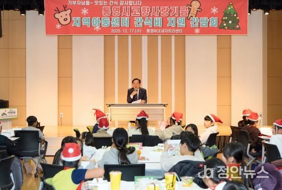 정안뉴스 김재홍 기자 | 통영시는 지난 17일 RCE세자트라센터에서 관내 12개소 지역아동센터 아동 100여 명과 통영시고향사랑기금으로 지원하고 있는 ‘지역아동센터 간식비 지원사업 간담회’를 개최했다.