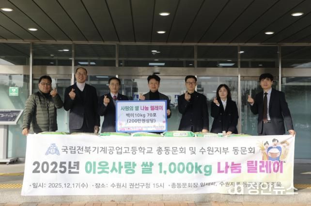 정안뉴스 안정주 기자 | 권선구는 지난 17일, 국립전북기계공고 총동문회로부터 백미 10kg 70포(200만 원 상당)를 후원받았다고 밝혔다.