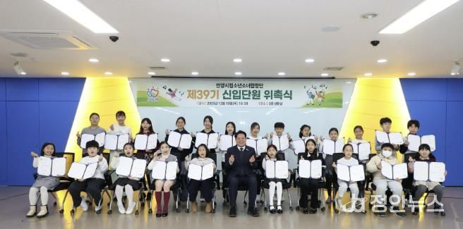 정안뉴스 안정주 기자 | 안양시는 지난 18일 시청 3층 상황실에서 ‘시립소년소녀합창단 제39기 신입단원 위촉식’을 개최하고 오디션을 통해 선발된 신입단원 23명에게 위촉장을 수여했다고 19일 밝혔다.