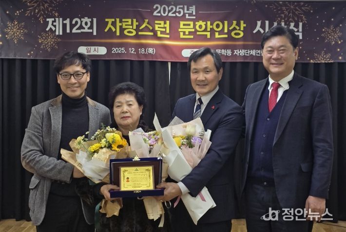 정안뉴스 안정주 기자 | 미추홀구 문학동은 동 자원봉사 활동가 이태숙 씨를 ‘제12회 자랑스러운 문학인상’ 수상자로 선정하고, 지난 18일 시상식을 개최했다.
