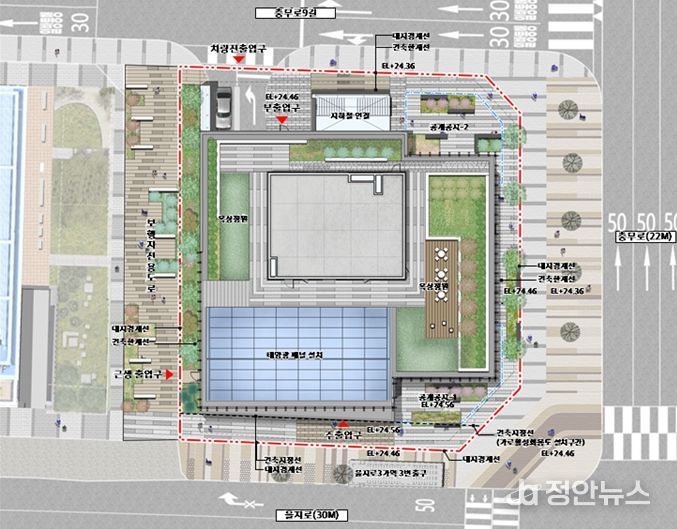 특히, 을지로변 업무시설 공급으로 중심업무지구로서의 기능을 강화하고, 지상 2층까지 가로활성화를 위한 근린생활시설을 집중배치했으며, 지상3층에는 벤처기업집적시설이 계획되어 성장동력 확보 통해 도시경쟁력강화를 기대하고 있다. 금번 통합심의에서는 보행통로를 인접지 공개공지와 연계하여 계획할 것을 주문했다.